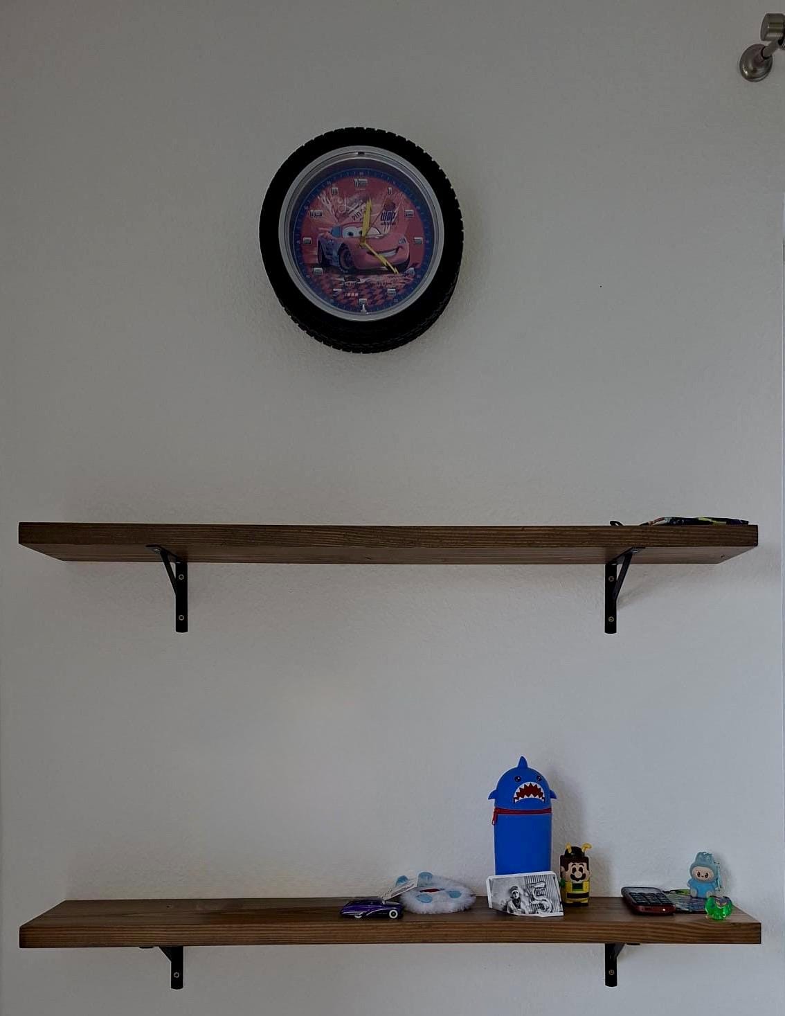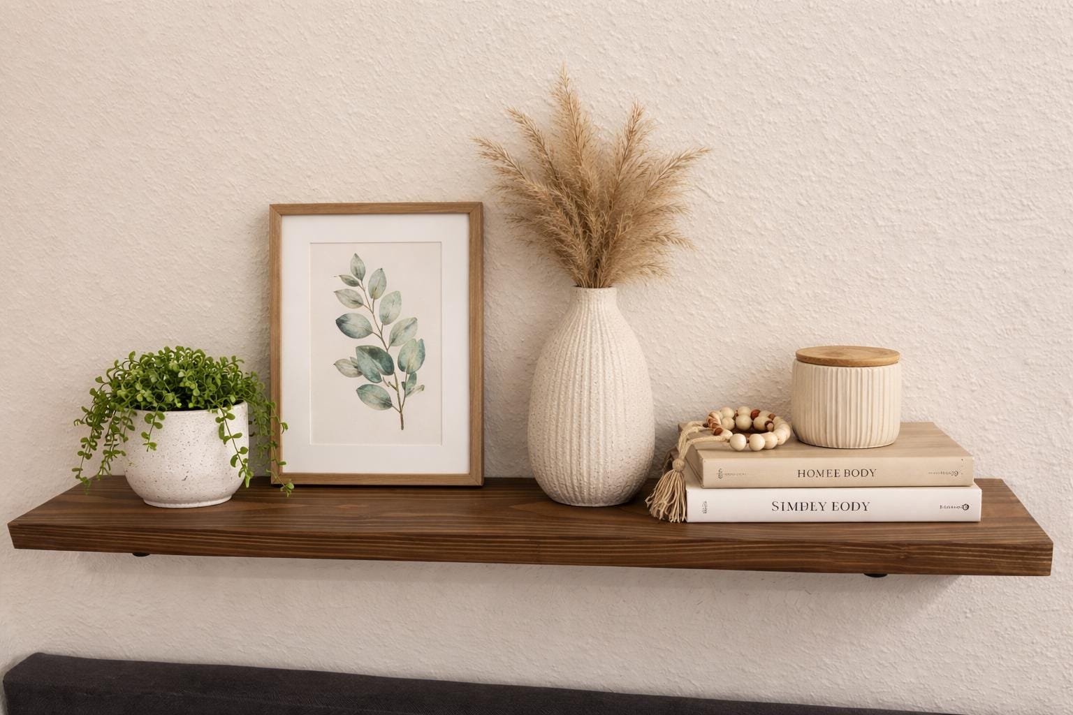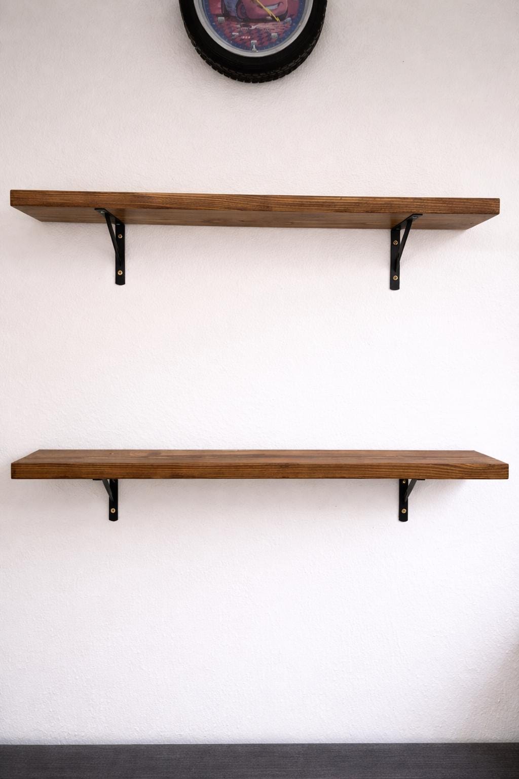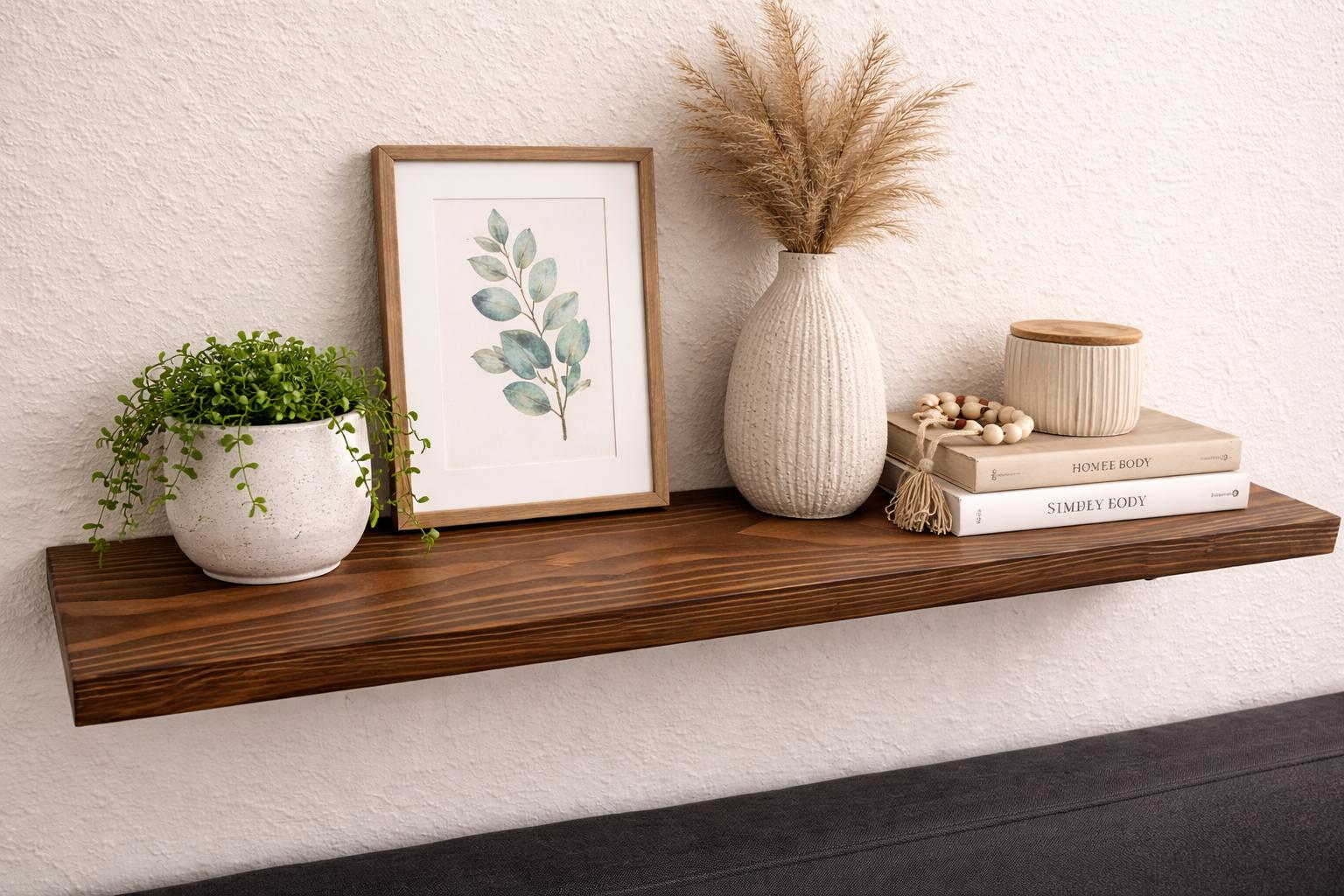 This stylish wall shelf made of solid wood combines natural warmth with modern industrial design. Perfect for books, plants, decorative items, or everyday objects – ideal for living rooms, offices, kitchens, or children's rooms.